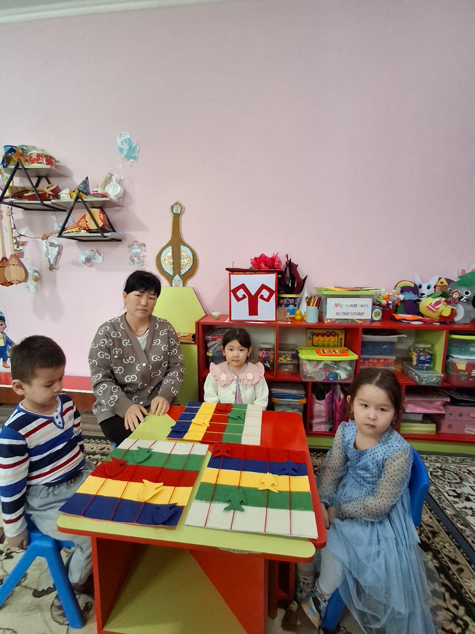 Наурыз айының іс-шаралар жоспарына сәйкес "Ұсақ қол моторикасын дамытуға арналған көрнекіліктермен таныстыру" тәрбиеші А.Абдиева